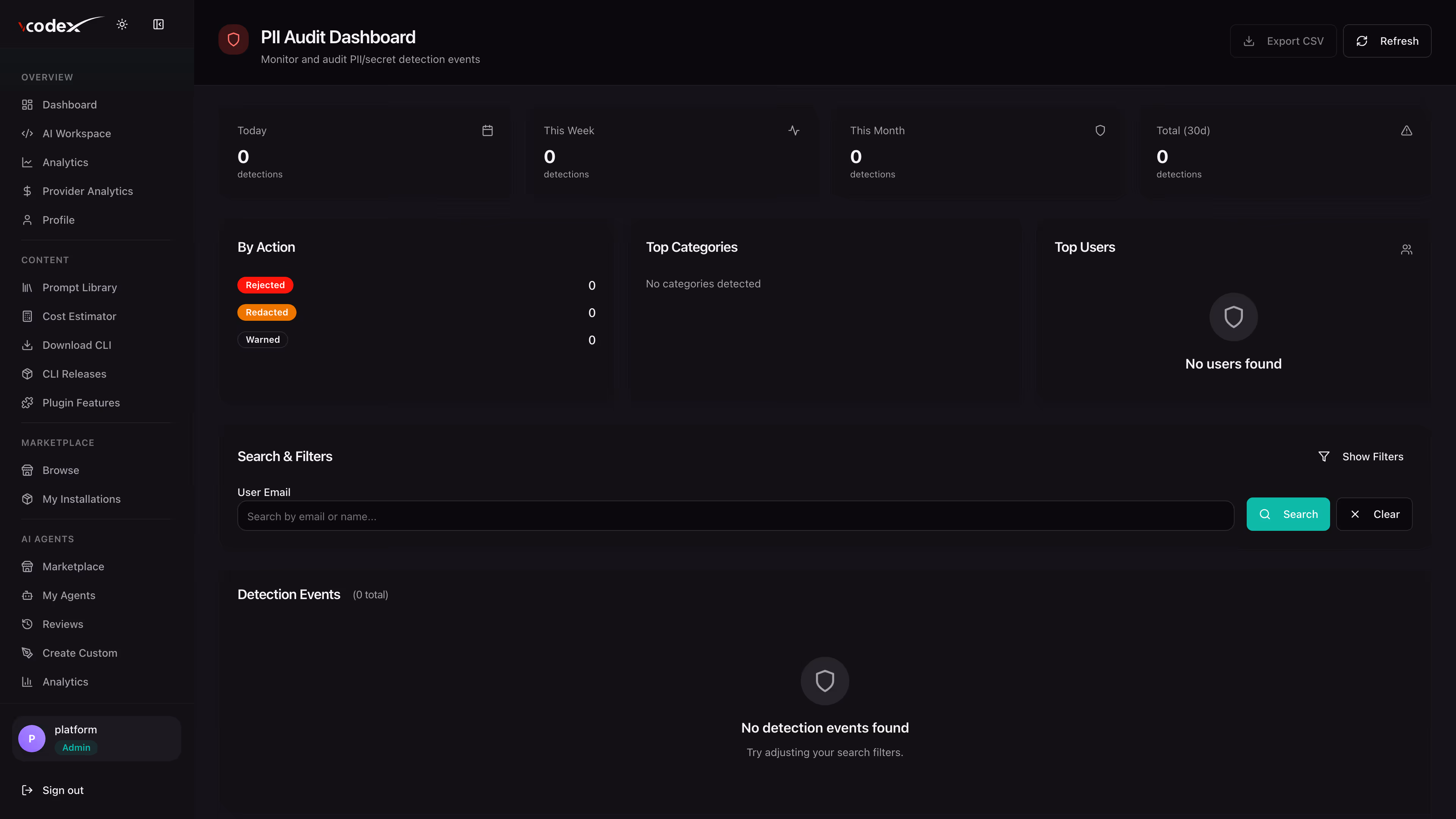 vCodeX includes PII and secret detection, IP allowlists, provider key vaults, full audit logs, and RBAC — all built-in. For maximum security, Enterprise customers can deploy on-premise where data never leaves their infrastructure.